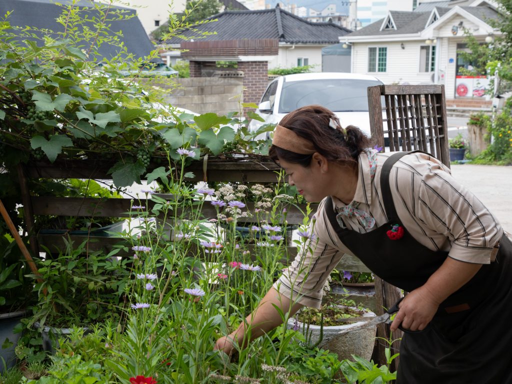 연수동에도 18개의 정원이 탄생했다. 공간과 실정에 맞춰 모양도 이름도 제각각이다. 가꾸는 사람들 마음대로 자유롭게 하나둘 생겨났다. 투박하고 소박하지만 사람들의 정은 크고 넘친다. 식물을 가꾸는 것은 꽤나 많은 정성이 깃든 일이다. 애써 길러낸 화초와 채소는 이웃과 함께 나누며 인정을 느낀다. 쓰레기로 골머리 아팠던 땅을 꽃이 피어나는 땅으로 바꾸는 마법같은 손길은 자부심이 된다. 주민들의 일상생활과 밀접한 관계가 있는 대문 앞, 마당 앞, 담장, 골목길, 자투리땅에 만들어진 개개의 정원은 주민들의 일상이자 삶이 되고, 마을을 잇는 문화의 화수분이 된다. 퇴색하는 원도심의 마을을 가꾸는 움직임으로, 마을의 자랑거리이자, 그들을 정주(定住)하게 하는 정원이다. 작가는 물리적 공간으로써의 정원의 기록과 그곳과 관계 맺는 사람, 흔적의 기록으로 시선을 교차하며 그가 정주하고 싶은 도시 충주를 따뜻한 시선으로 드러낸다.